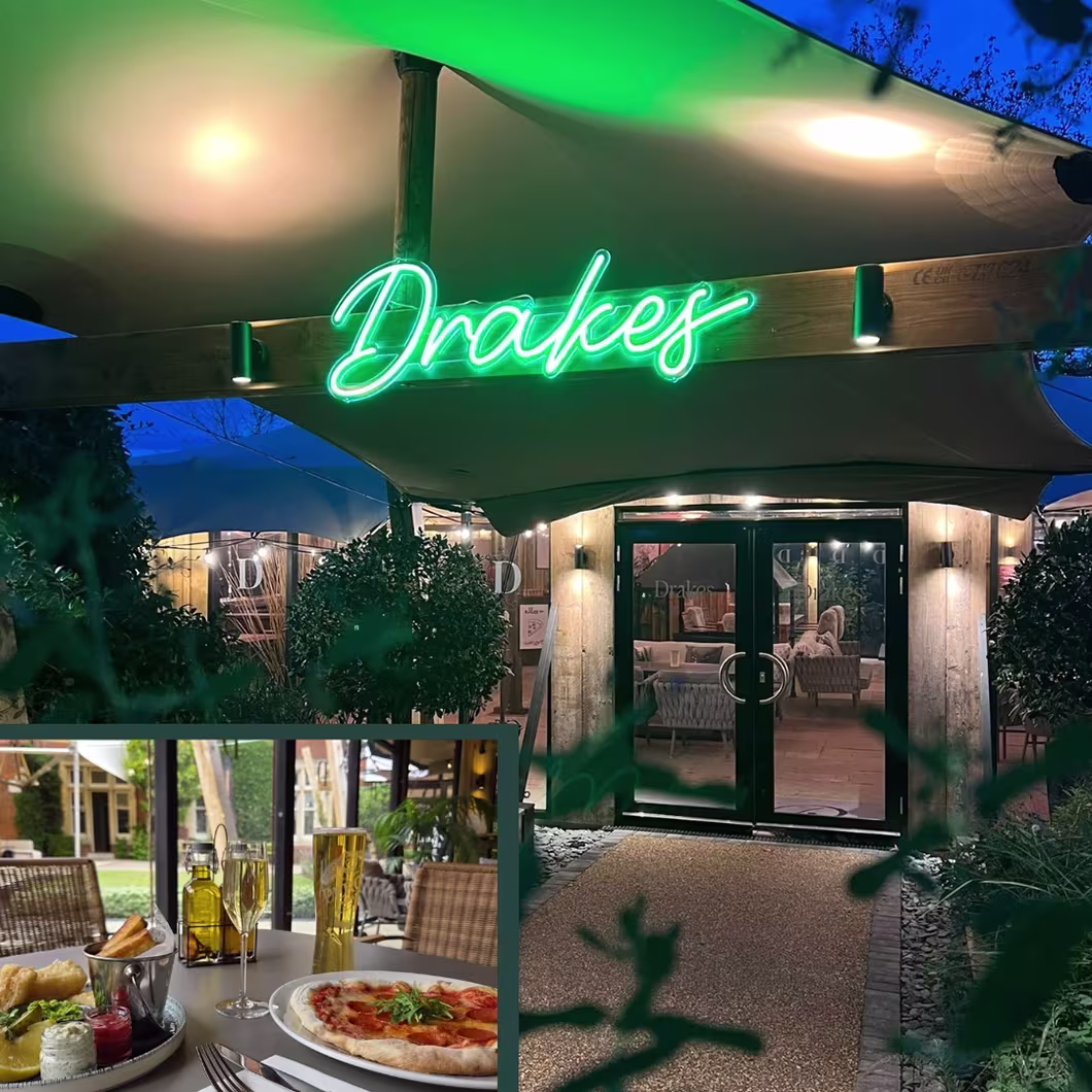 Drakes offers a cosy, covered dining area serving tempting nibbles, sharing plates, homemade pizzas, Pontlands’ classic favourite dishes, and mouthwatering drinks.